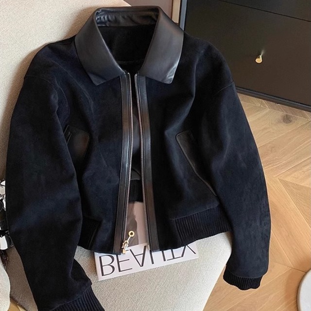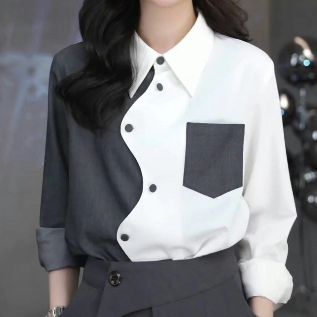 フェイクレザー×アシンメトリーデザイン シャツジャケット T-007