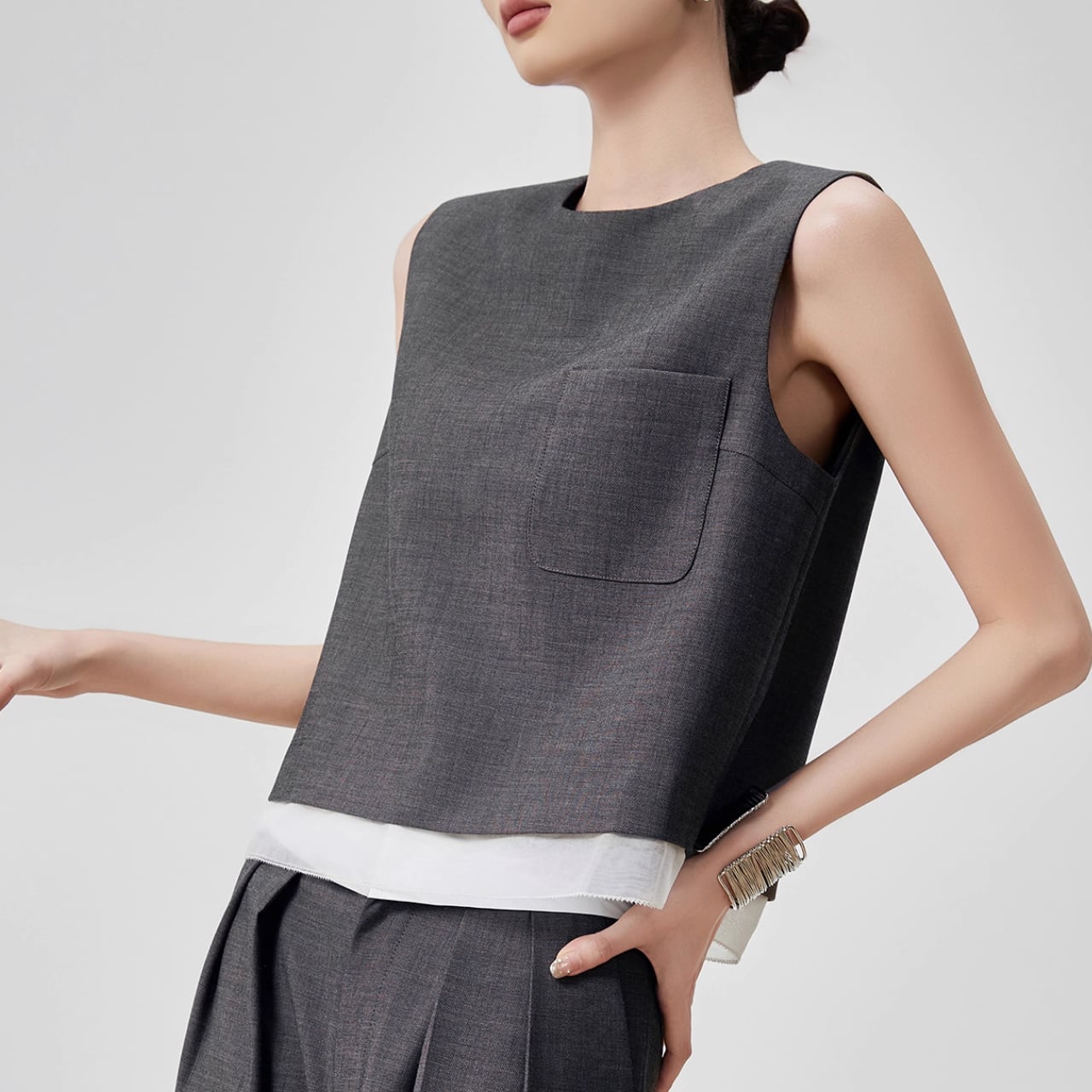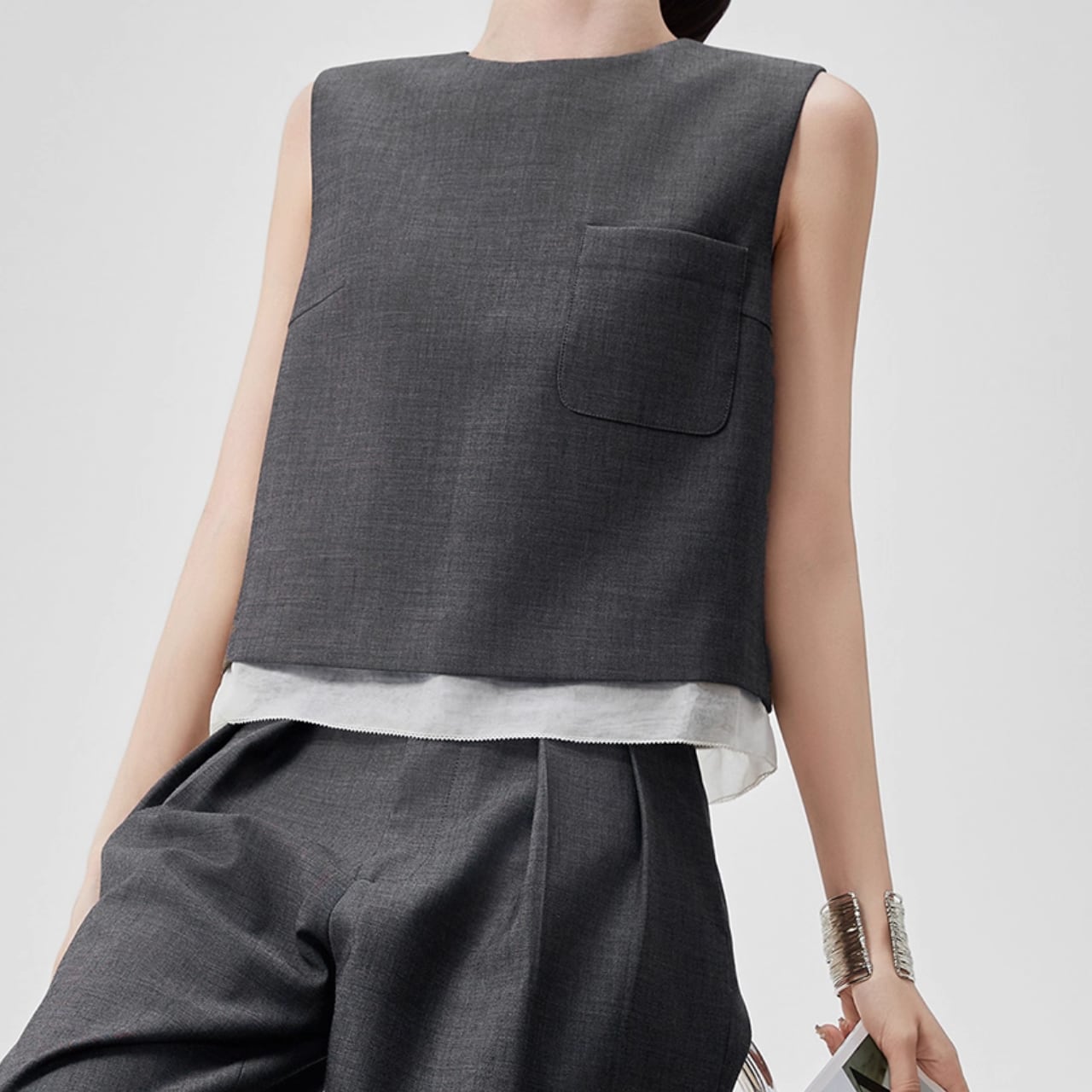大人シンプル 上品きれいめコーデ ノースリーブトップス T-002