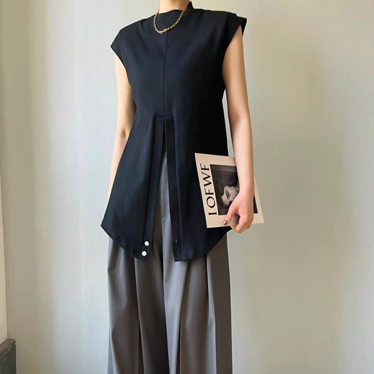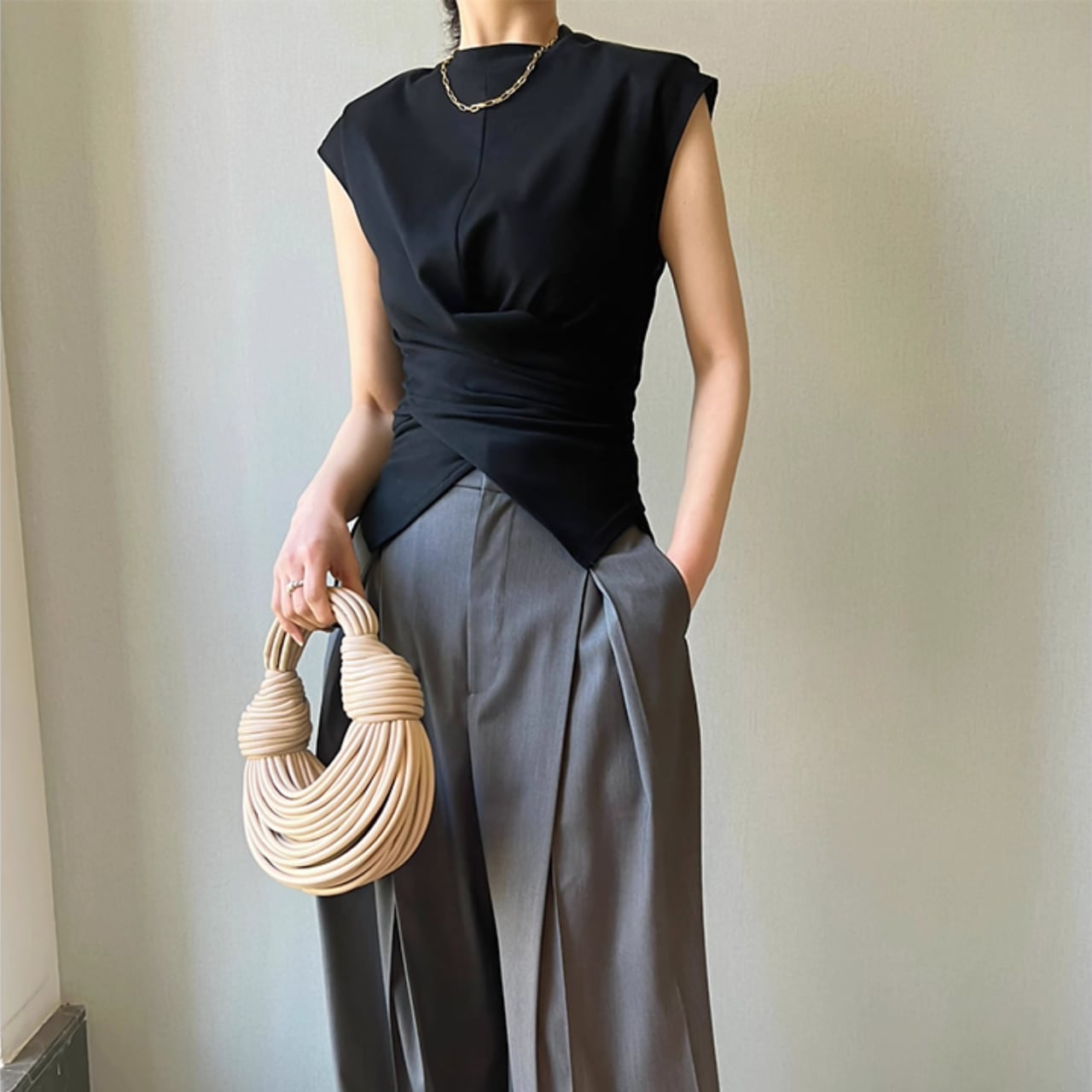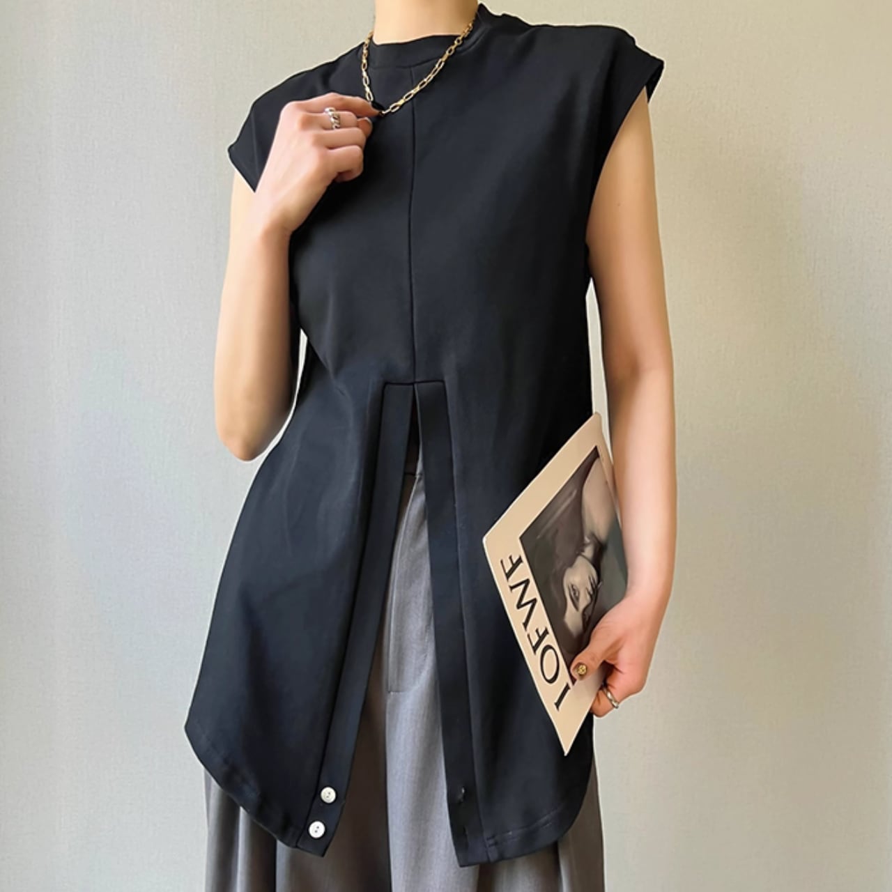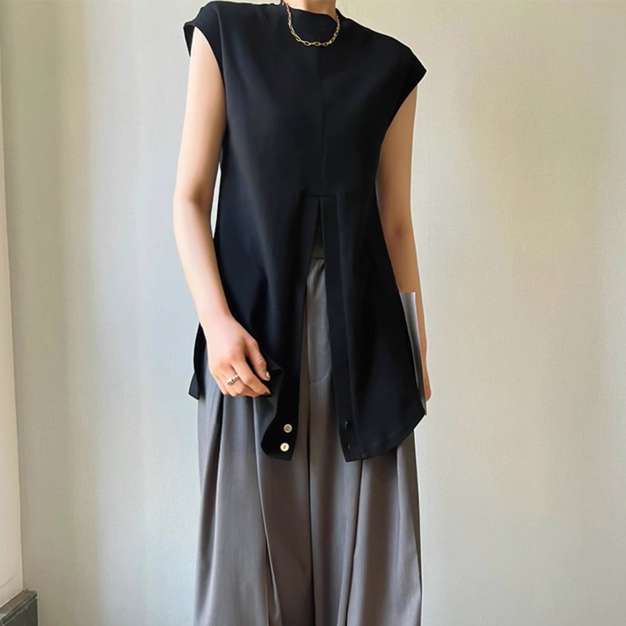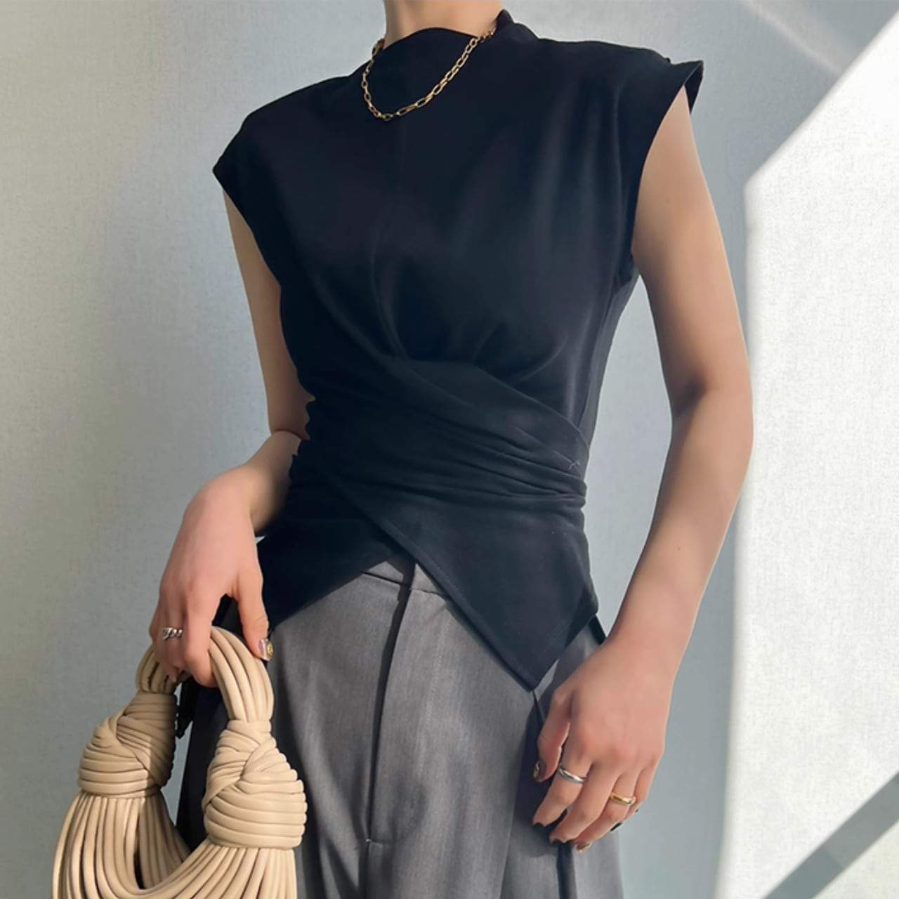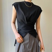 クロスデザイン ウエストシェイプ ノースリーブトップス T-003