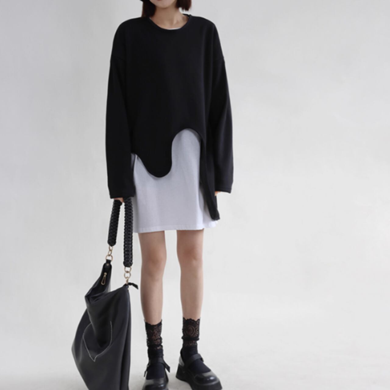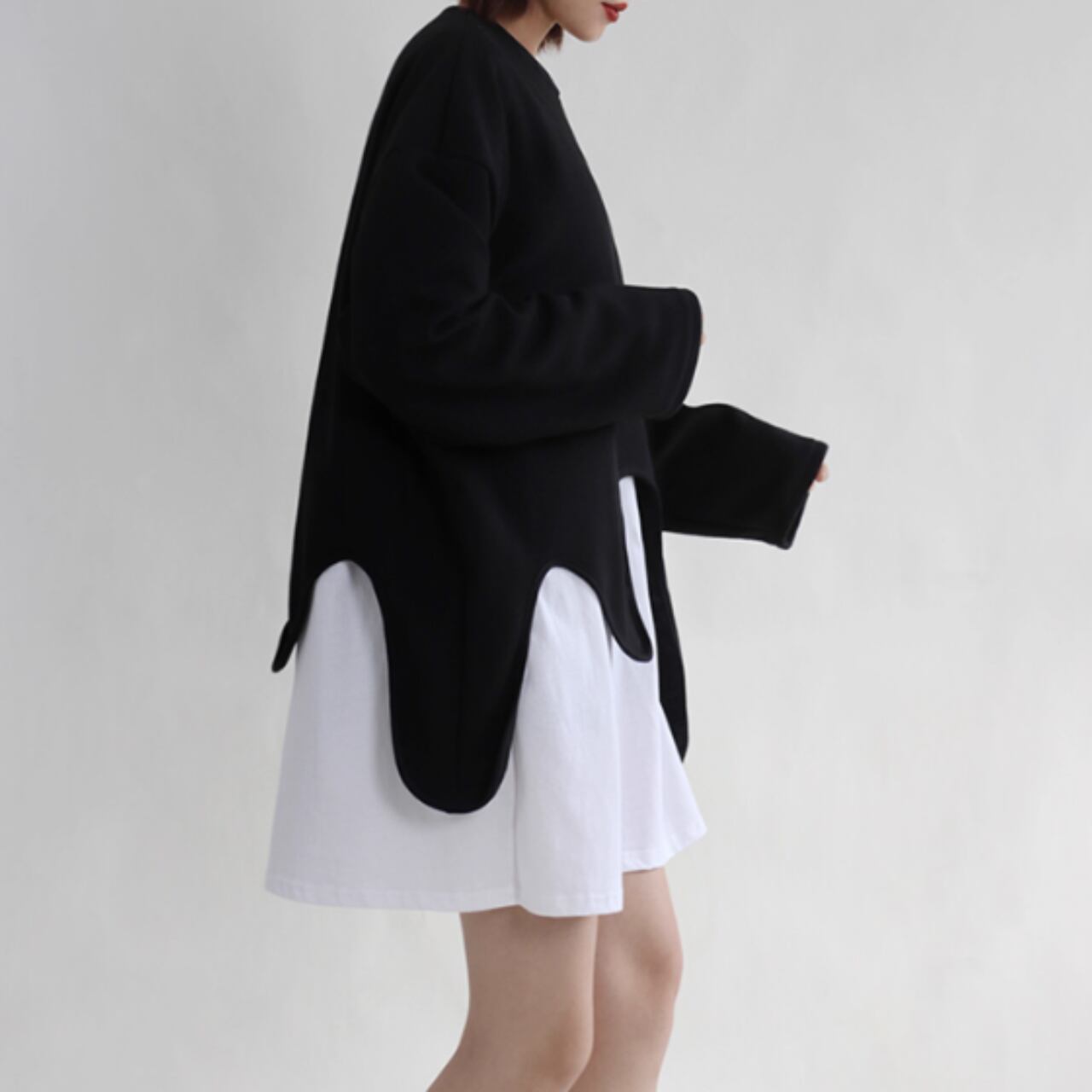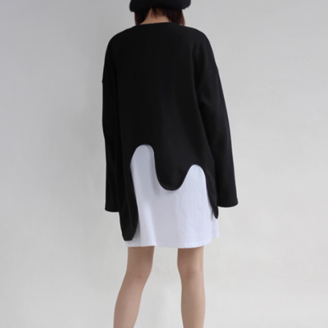 アシンメトリーカット モードロングニット T-008