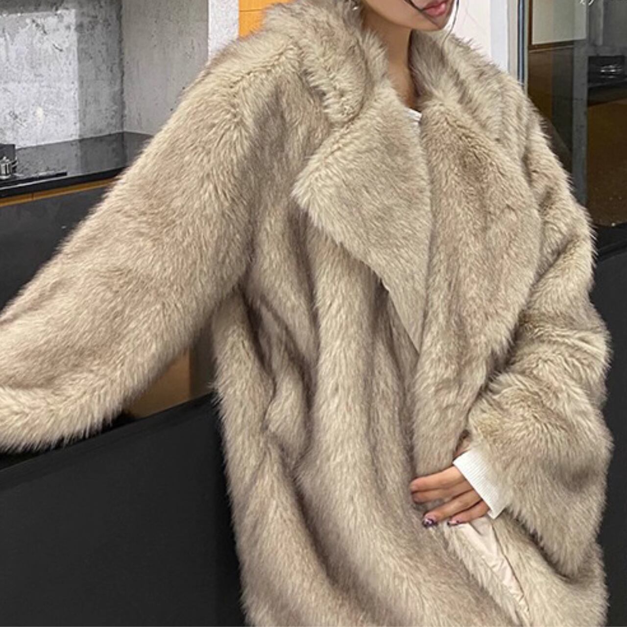 ゆったりシルエット ボリュームファーコート O-005
