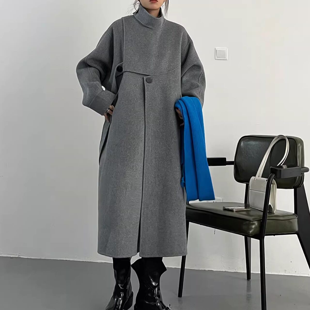 ビッグカラーデザイン ロングコート O-007