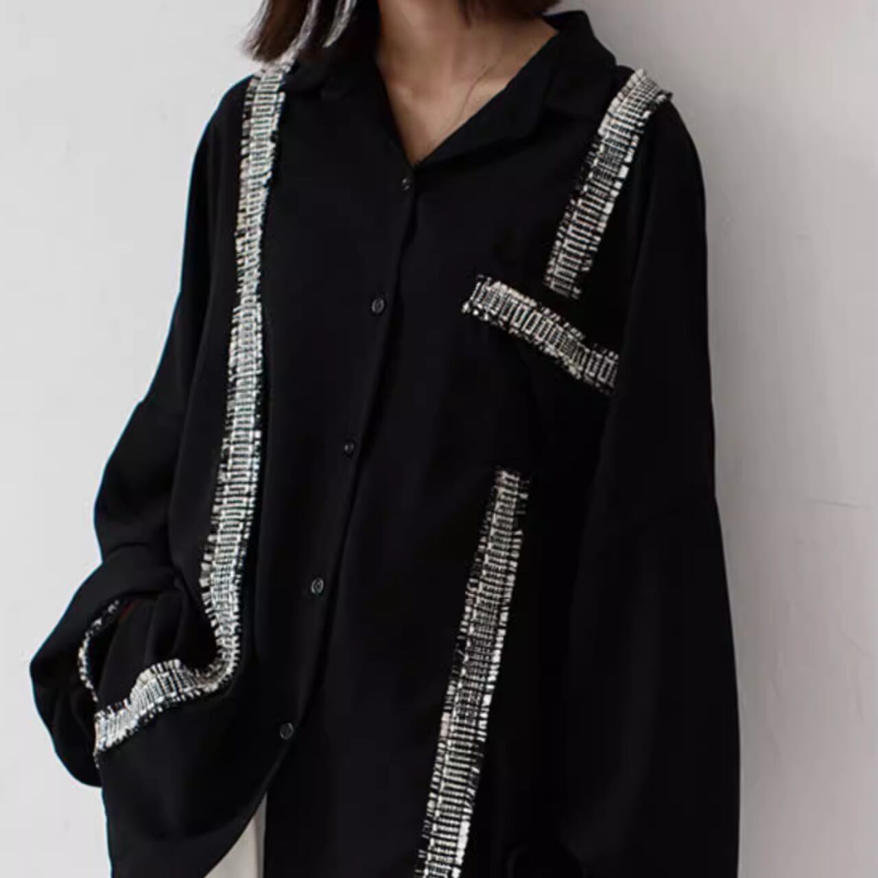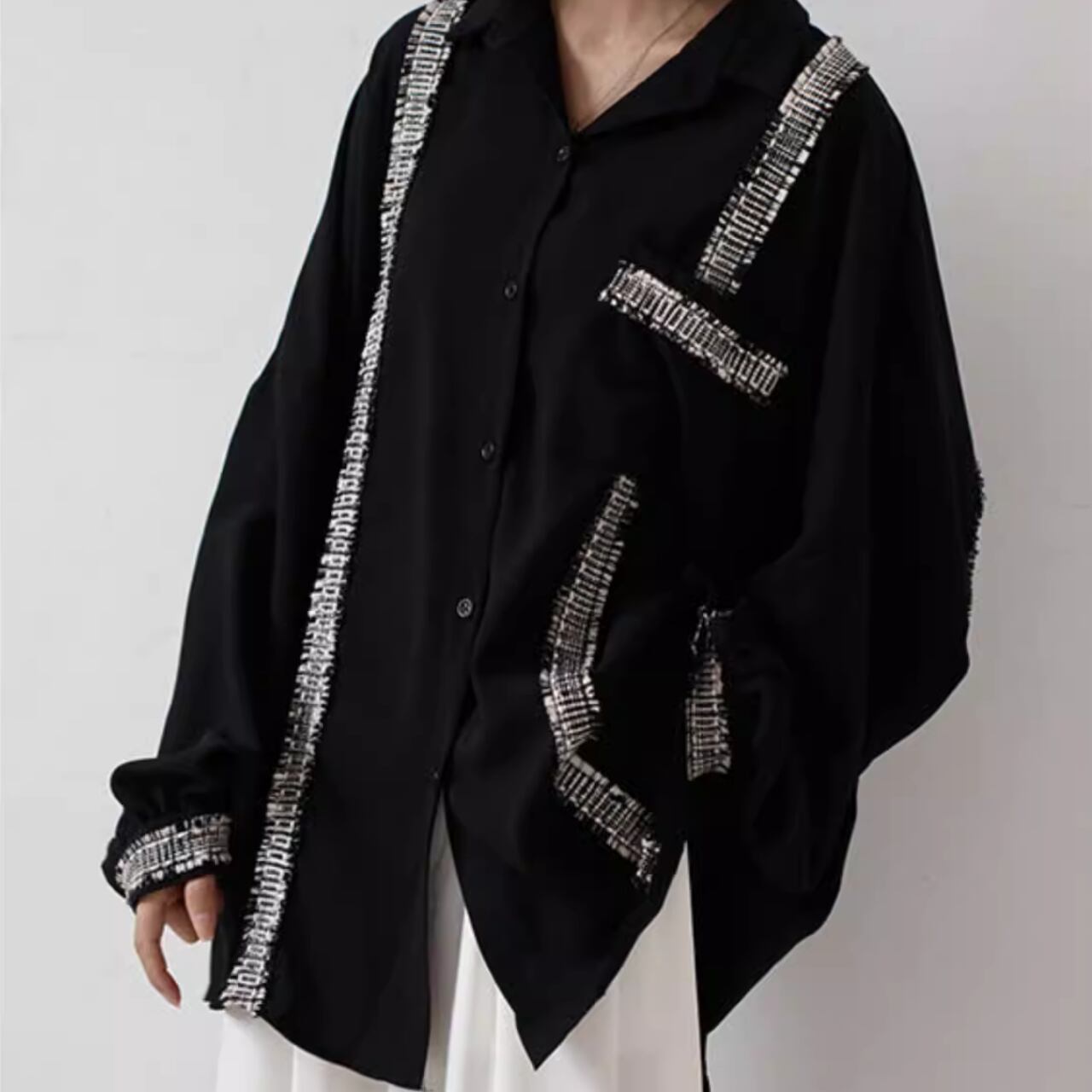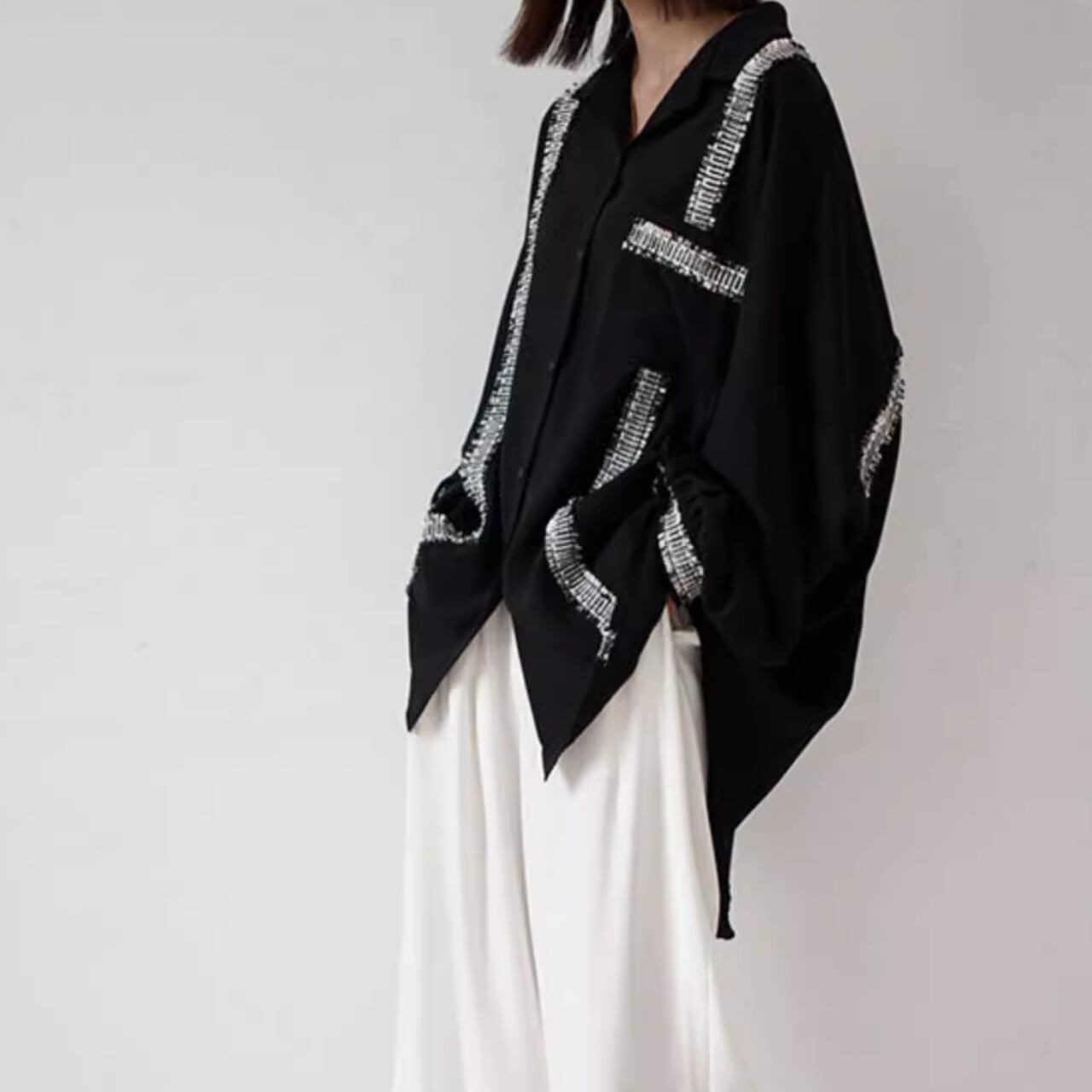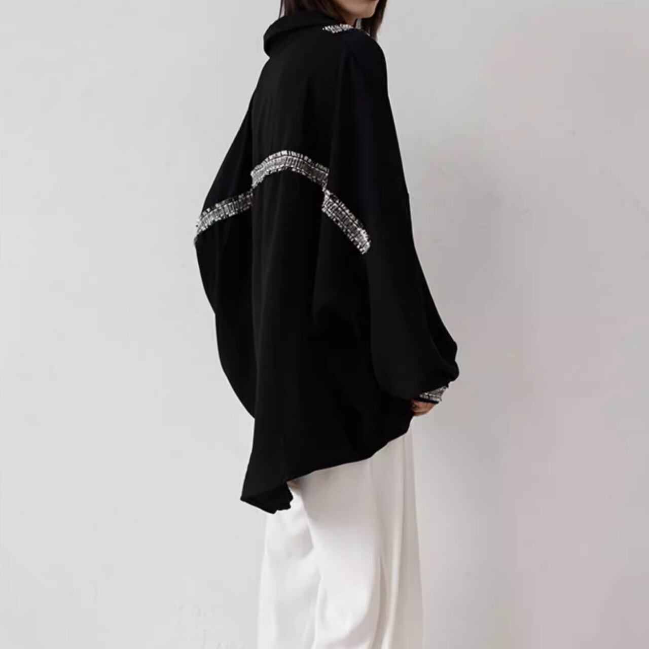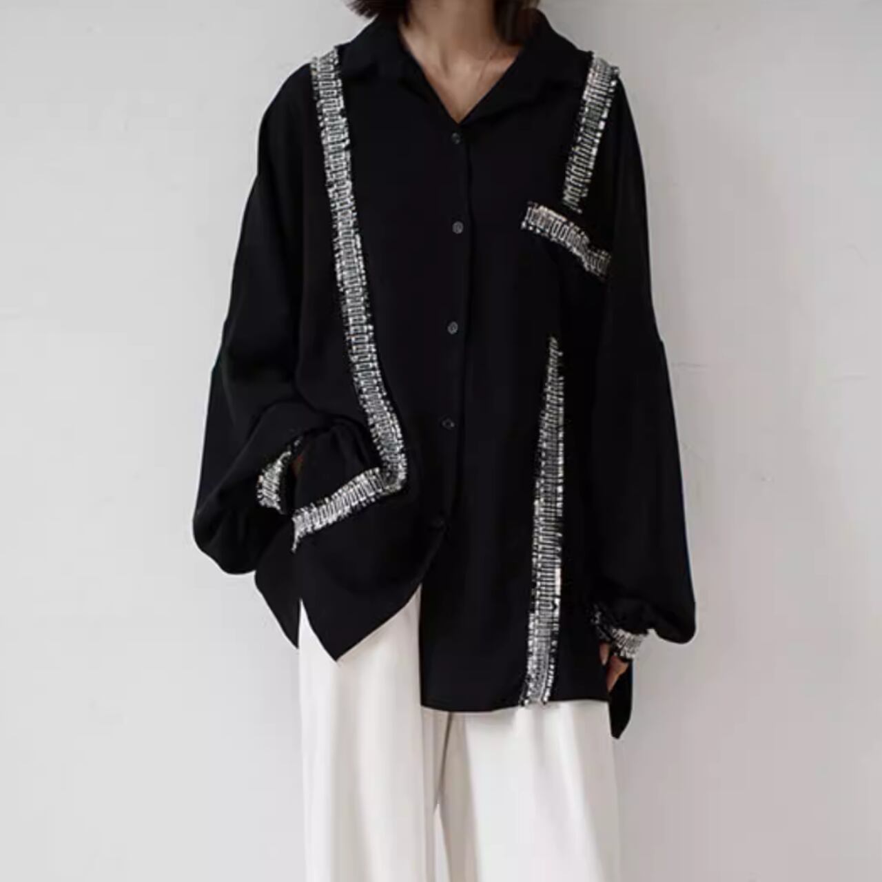 不規則デザイン 配色シフォンシャツ T-015