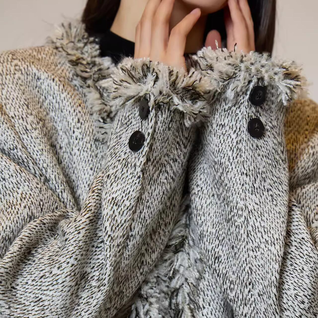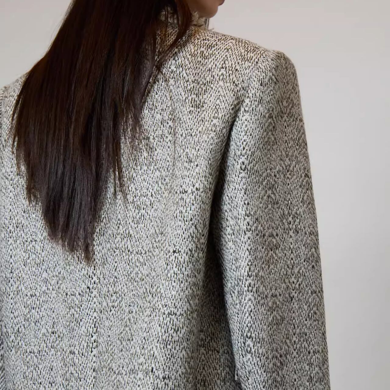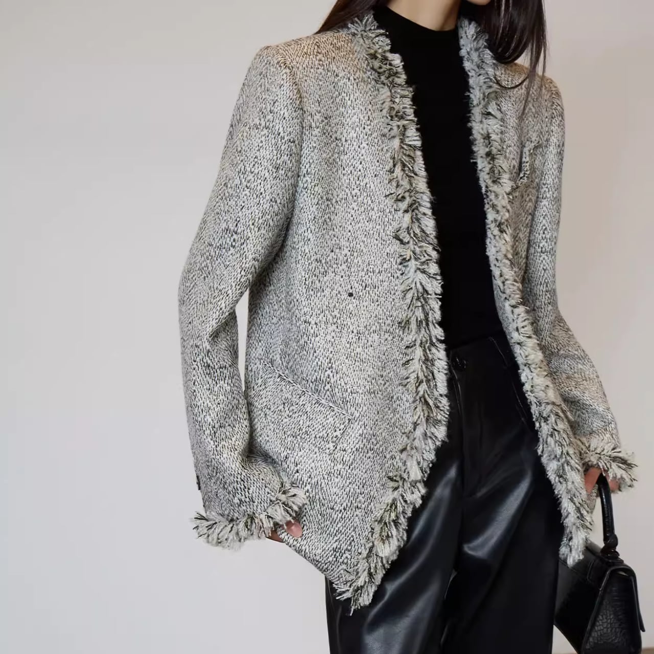 フレンチシック 起毛ツイード ノーカラージャケット O-010