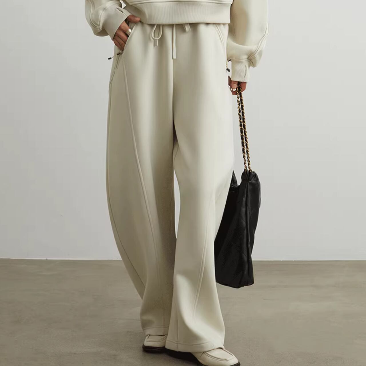 上品ミニマル ワイドスウェットパンツ B-010