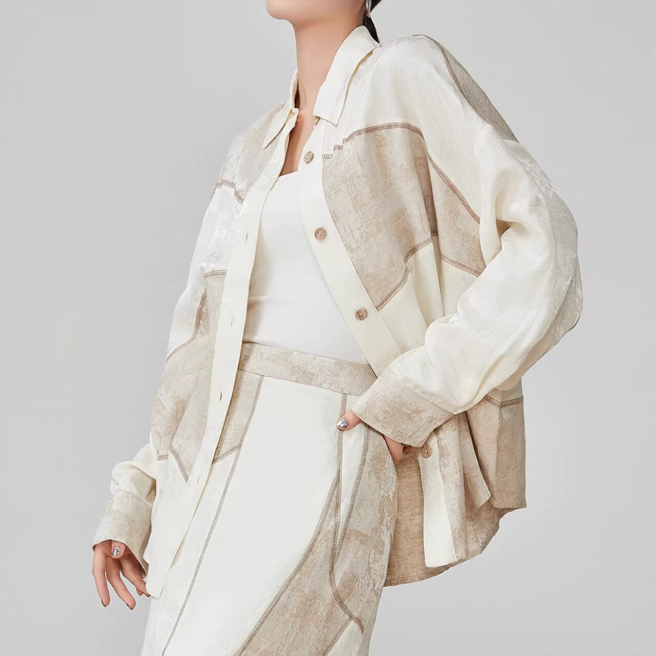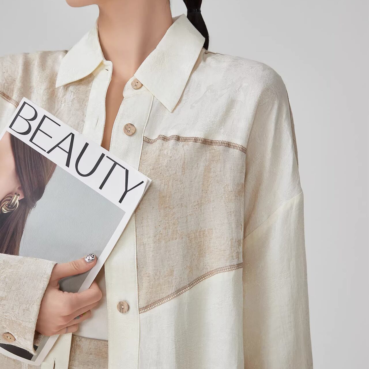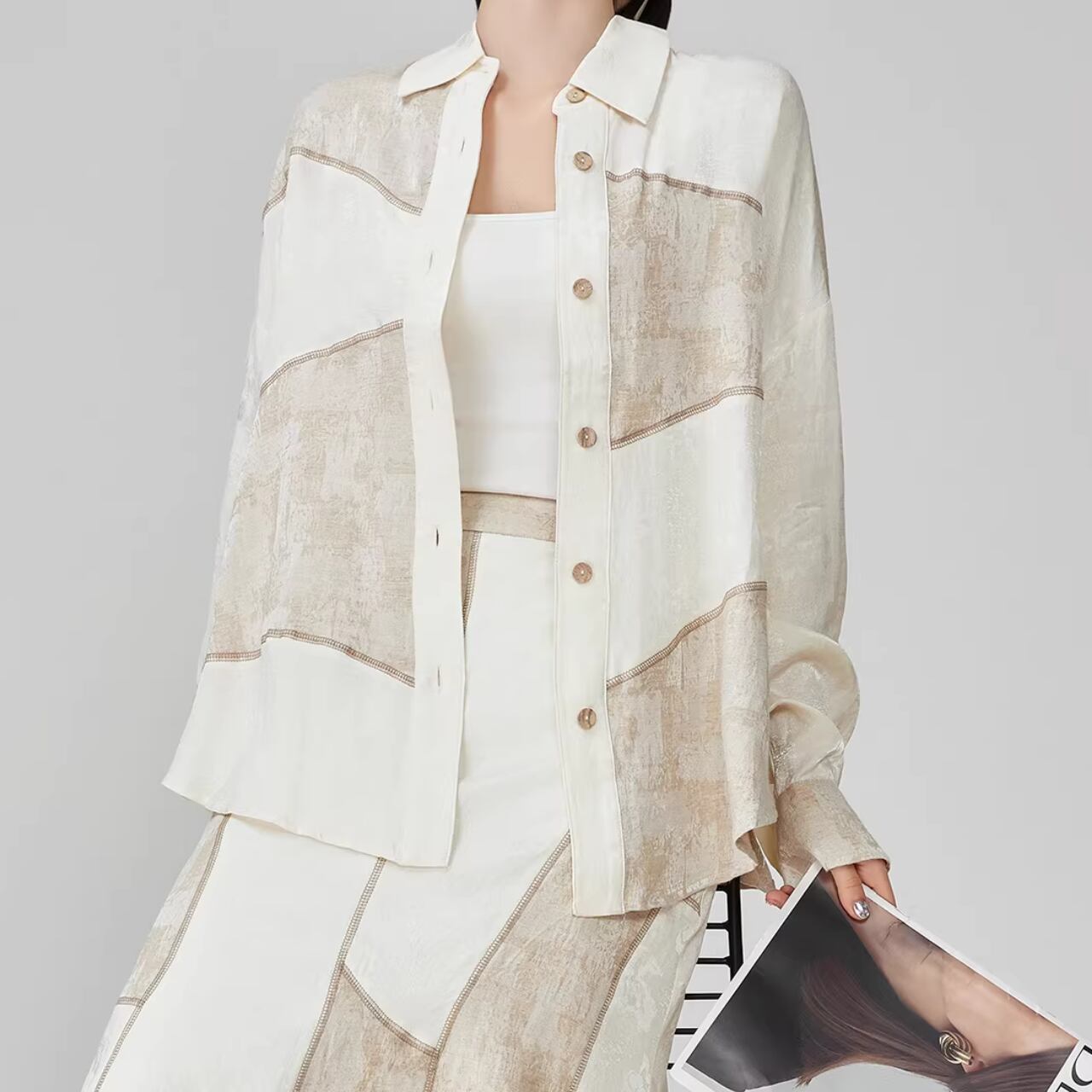 パッチワークデザイン シャツブラウス WA0069