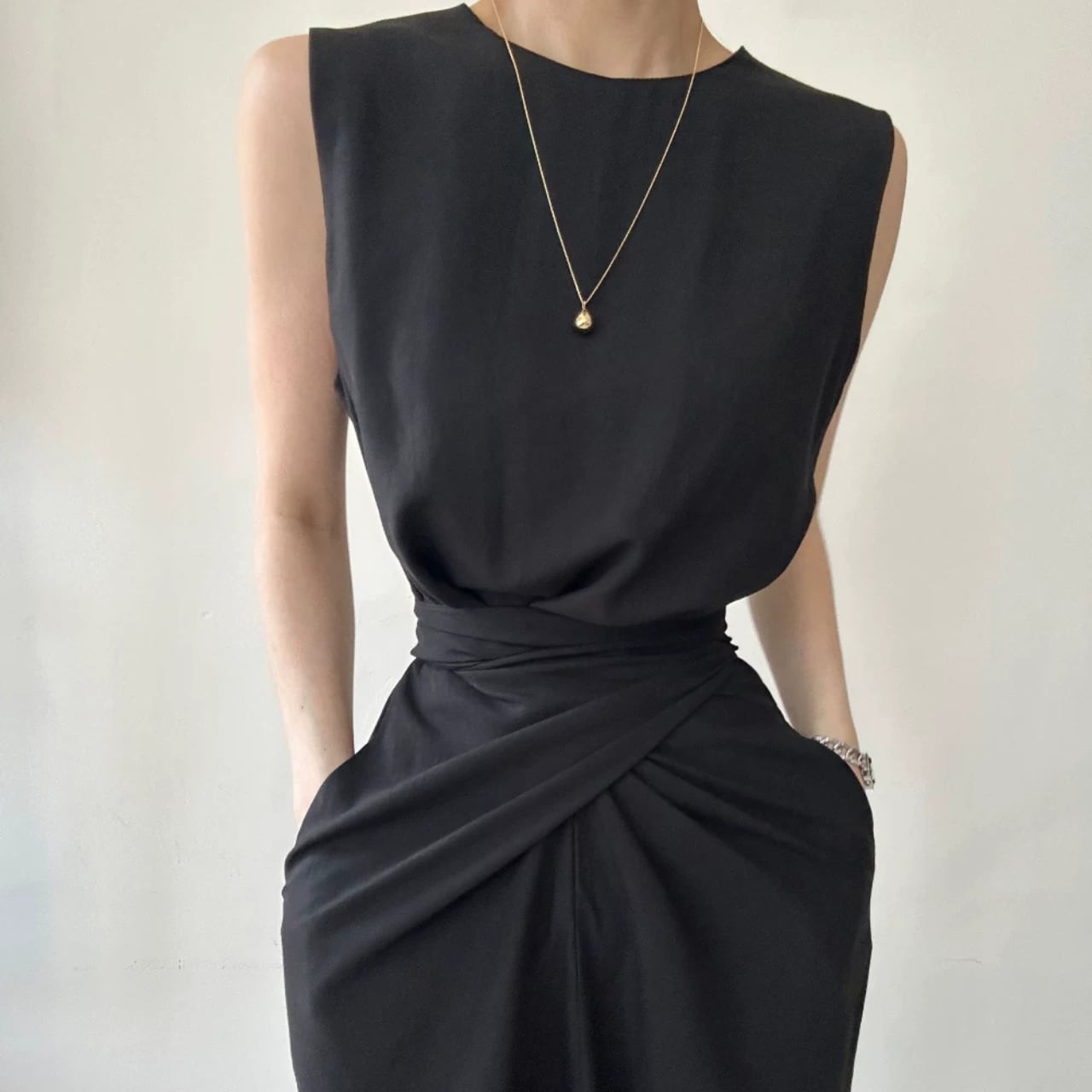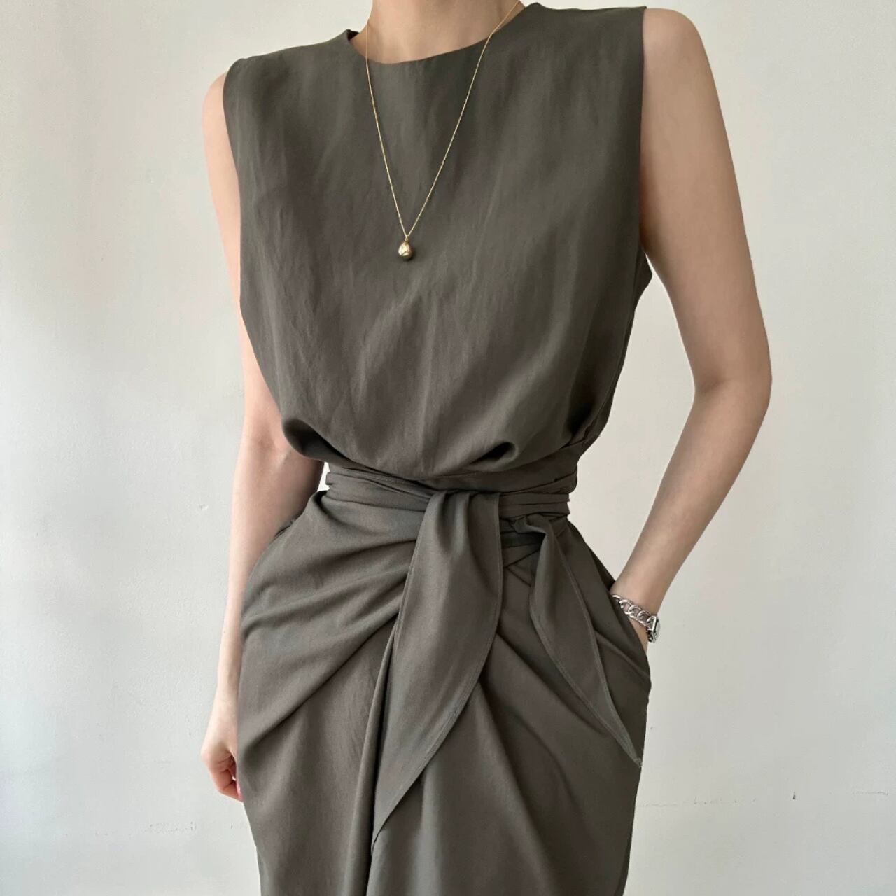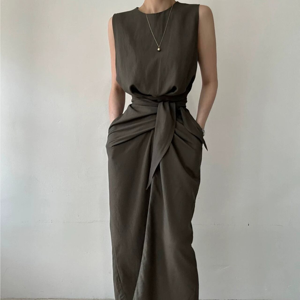 ウエストツイスト ノースリーブロングワンピース WA0071
